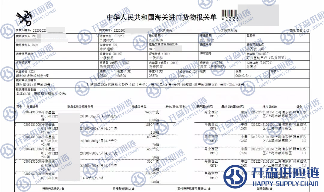 一、馬來西亞冷凍墨魚進口報關(guān)代理案例詳情