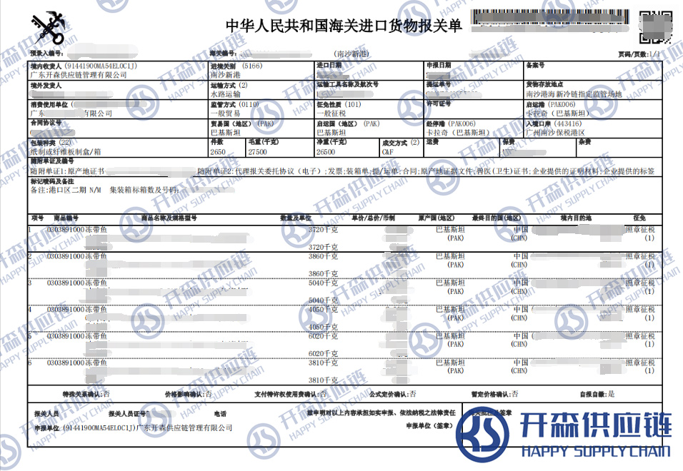 一、巴基斯坦凍帶魚進(jìn)口報關(guān)代理案例詳情