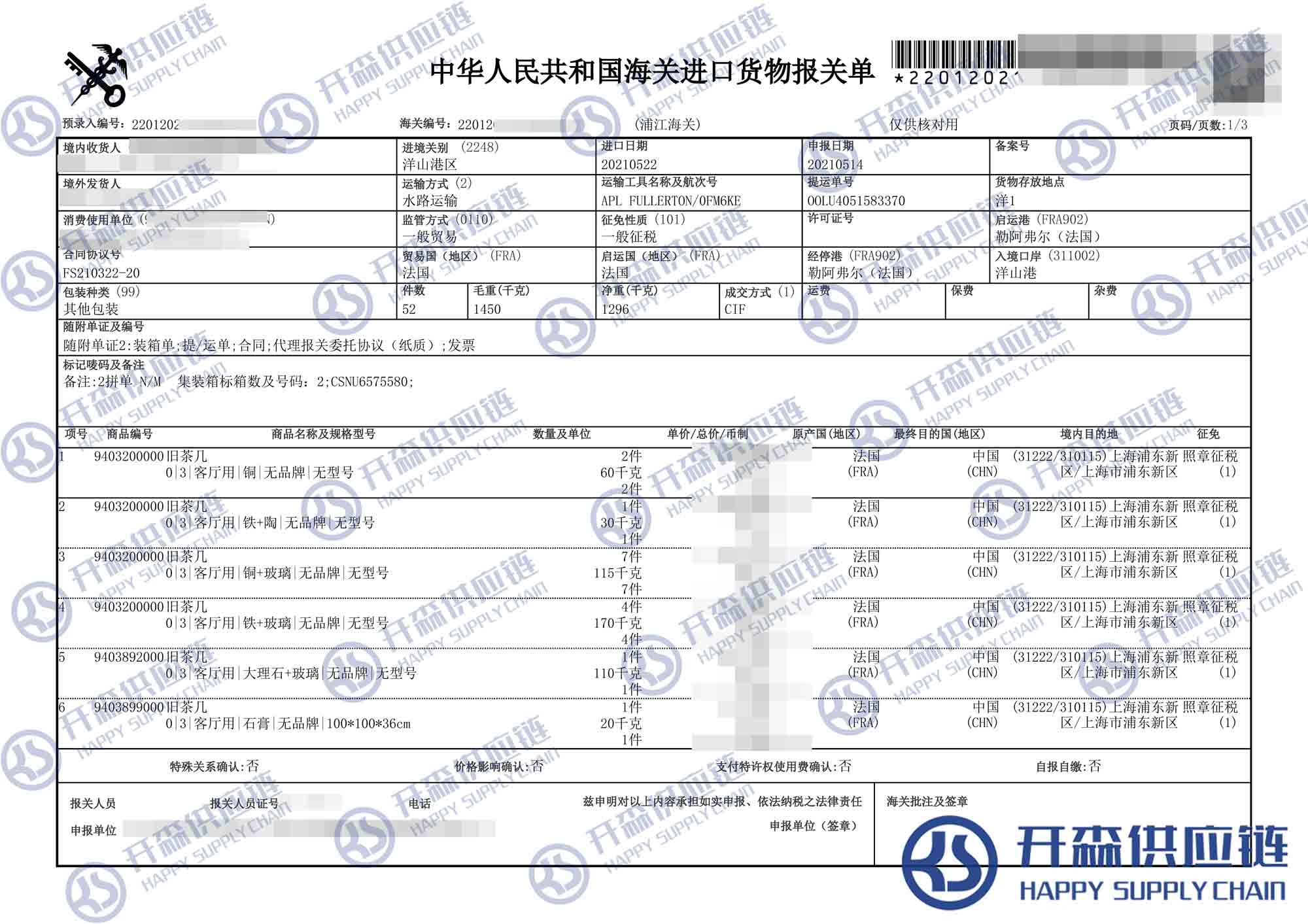 一、法國二手舊茶幾家具進(jìn)口報(bào)關(guān)代理案例詳情