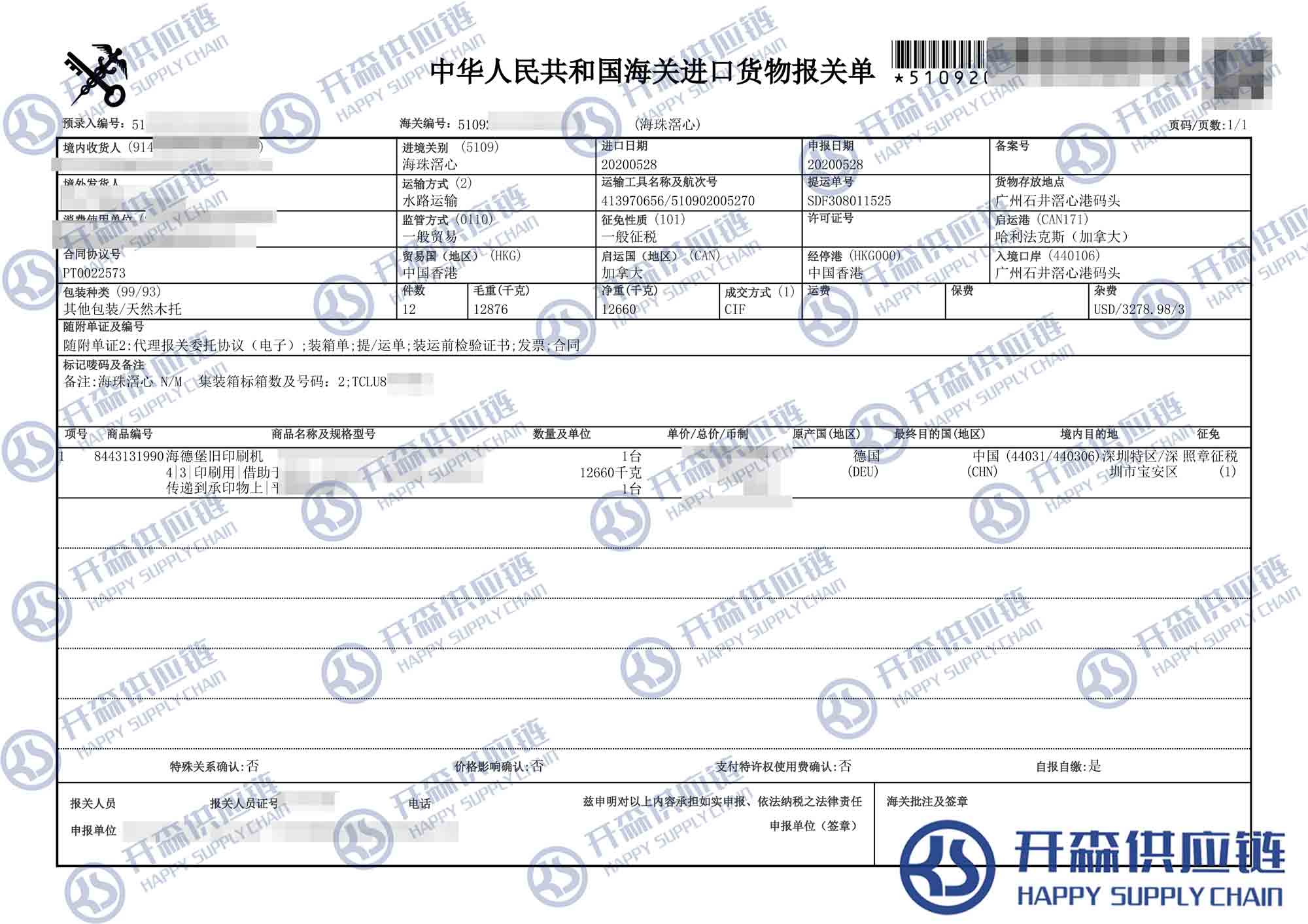 廣州港二手海德堡印刷機進口報關(guān)代理服務(wù)【進口案例】