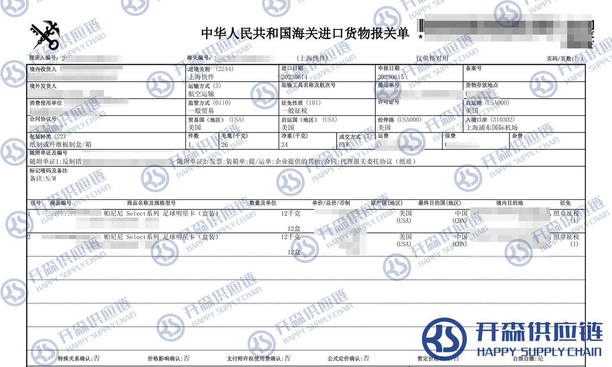 開森進口供應鏈擁有球星卡進口報關操作經驗及案例,十余年操作經驗及案例可供參考,可按需定制球星卡進口方案,幫助客戶解決進口難題,快速進口清關到港到貨。