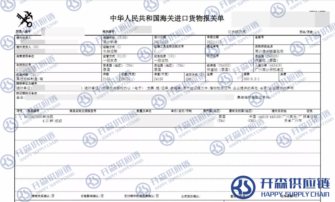 一、泰國鮮龍眼進口報關(guān)代理案例詳情